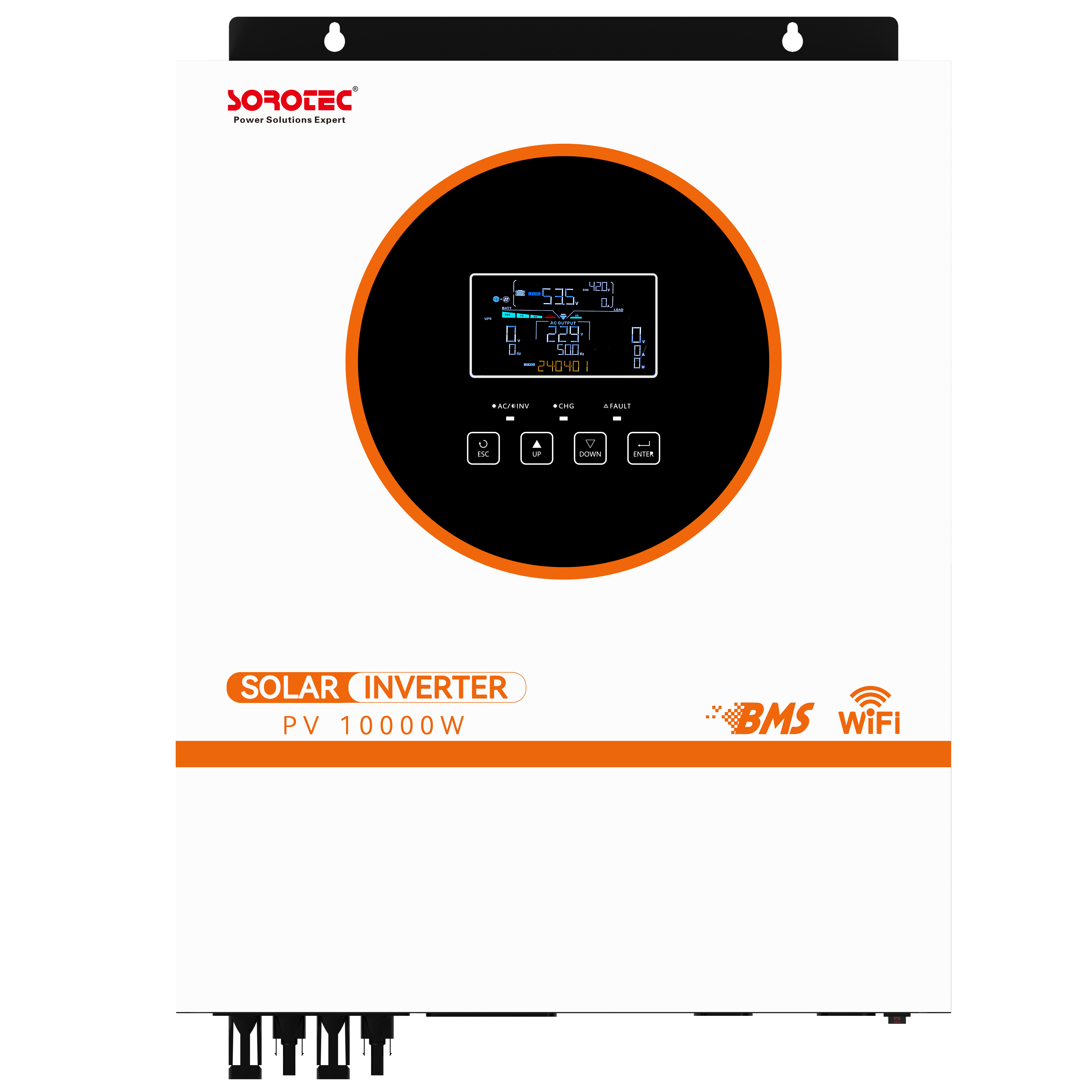 1、纯正弦波离网型光储一体机 2、输出功率因数1 3、可选大功率充电电流 4、宽直流输入范围 5、家用电器和个人电脑的可选输入电压范围 6、通过LCD设置可配置市电/太阳能输入优先级与交流电…
