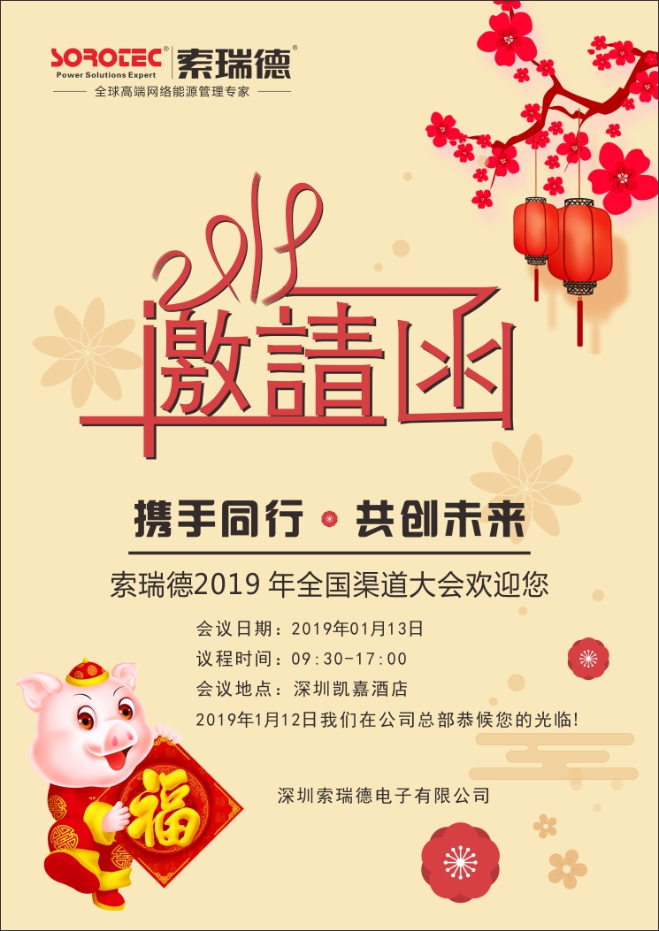一元复始,万象更新;满怀丰收的喜悦,我们挥手作别砥砺奋进的2018,阔步迈入华章初展的2019。值此辞旧迎新之际,索瑞德向支持和关心公司发展的各级领导、各界朋友表示诚挚的谢意!向支持与帮助公司发展的所有客户与供应链伙伴表示真诚的感谢!向一年来为公司的发展做出卓越贡献的全体合作员工表示崇高的敬意!衷心祝愿大家新年快乐、幸福安康!