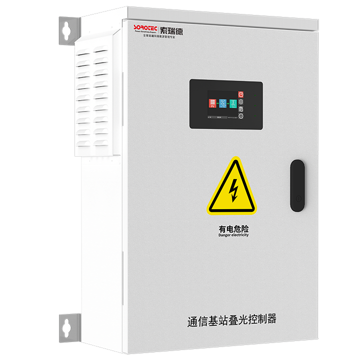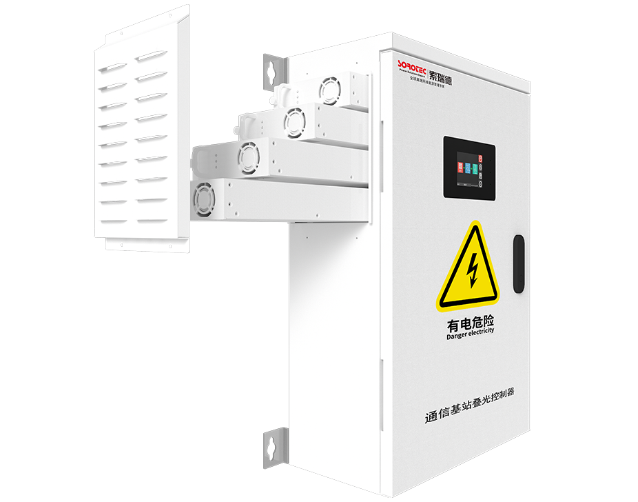 光伏组件产生的电流经叠光控制器 DC-DC 光伏模块降压处理后接入开关电源直流母排。基站设备工作电压区间为 42V-58V, 额定工作电压为 54V。在阳光充足情况下叠光控制器直流电压比基站原有电源机柜直流电压提升0.5-2.0V(可以根据维护要求 进行调整),保证设备安全运行并优先消纳光伏电力,电流切换过程为双路在线式切换。